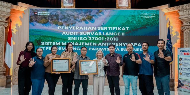 The Nusa Dua, (POSTLOMBOK.COM) 09 April 2026 – InJourney Tourism Development Corporation (ITDC) kembali mengukuhkan komitmennya dalam memperkuat tata kelola perusahaan yang transparan dan berintegritas melalui pencapaian sertifikasi SNI ISO 37001:2016 Sistem Manajemen Anti Penyuapan (SMAP) yang diterima pada Jumat, (27/3) di The Nusa Dua. Sertifikasi ini diperoleh setelah ITDC …